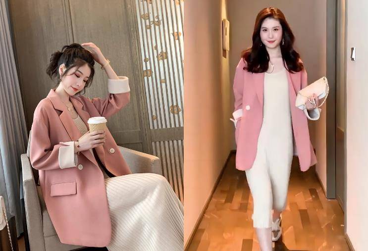 粉色西装+米色针织毛衣裙。穿上它,尽显高贵与优雅。搭配米色毛衣裙,尽显温柔魅力。背上一个米色的迷你包,整体看起来就是这样的景象。这种组合给人一种高贵和品味的感觉,甚至不经意间就会流露出来。无论您走在街上还是参加社交活动,您都可以轻松回头率。温暖的粉色西装与柔和的米色毛衣裙相得益彰,形成和谐又时尚的整体。穿着令人难忘的风格,散发出自信和魅力。