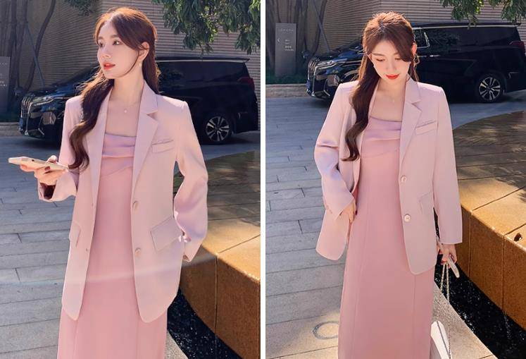 粉色西装+米色针织毛衣裙。穿上它,尽显高贵与优雅。搭配米色毛衣裙,尽显温柔魅力。背上一个米色的迷你包,整体看起来就是这样的景象。这种组合给人一种高贵和品味的感觉,甚至不经意间就会流露出来。无论您走在街上还是参加社交活动,您都可以轻松回头率。温暖的粉色西装与柔和的米色毛衣裙相得益彰,形成和谐又时尚的整体。穿着令人难忘的风格,散发出自信和魅力。